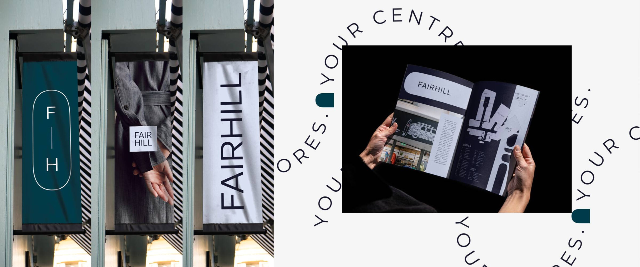 The new multimillion transformation for Fairhill was developed to create a visually striking and modern identity, inspired by leading retail fashion brands. Using sleek typography, a refined colour palette, and contemporary design elements, the brand positions Fairhill as a sophisticated and aspirational shopping destination.