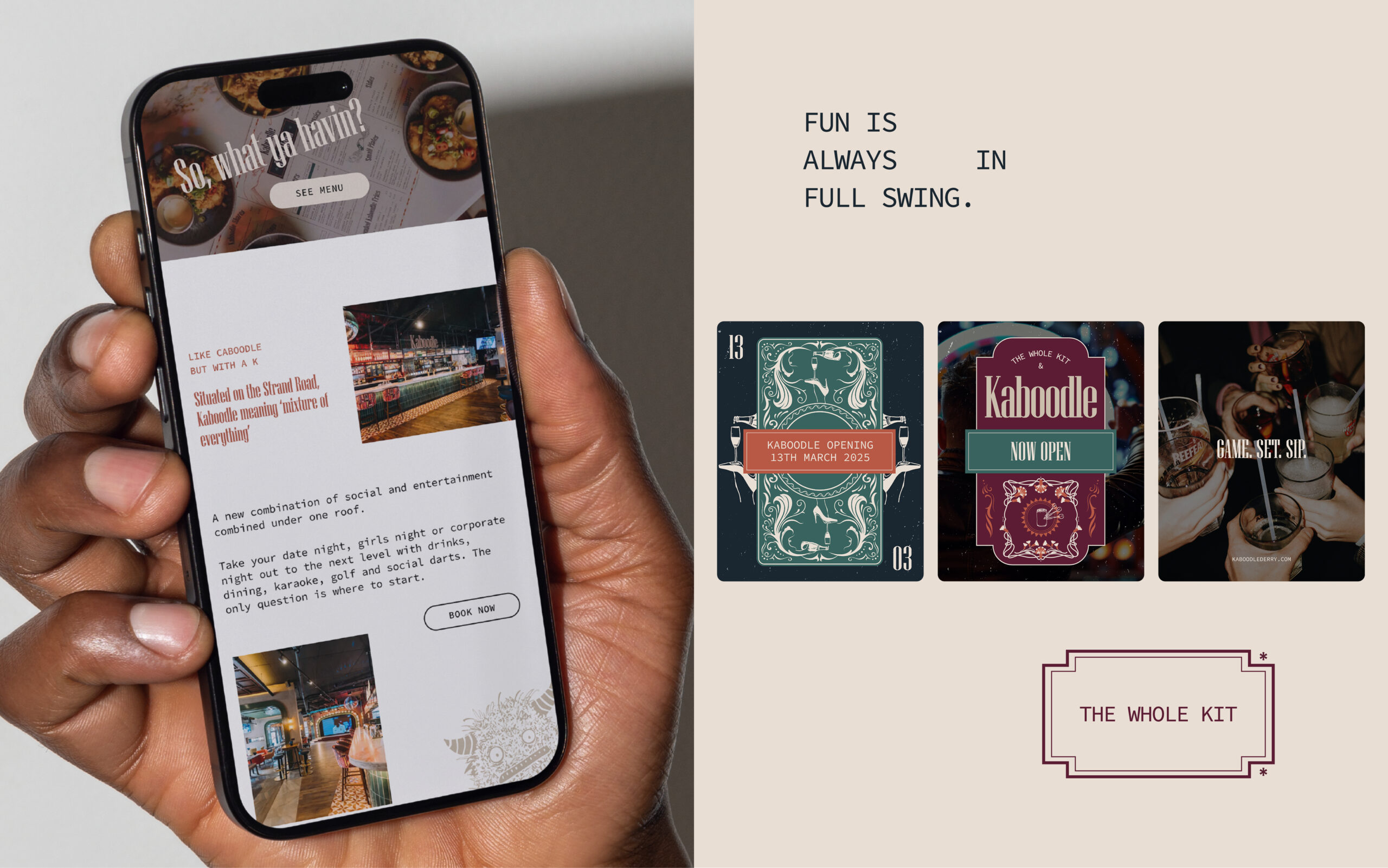 Kaboodle is a lively, entertainment-focused venue, and we designed the website to reflect that energy while ensuring a smooth user experience. Bold graphics, playful illustrations, and subtle animations keep users engaged without overwhelming them.