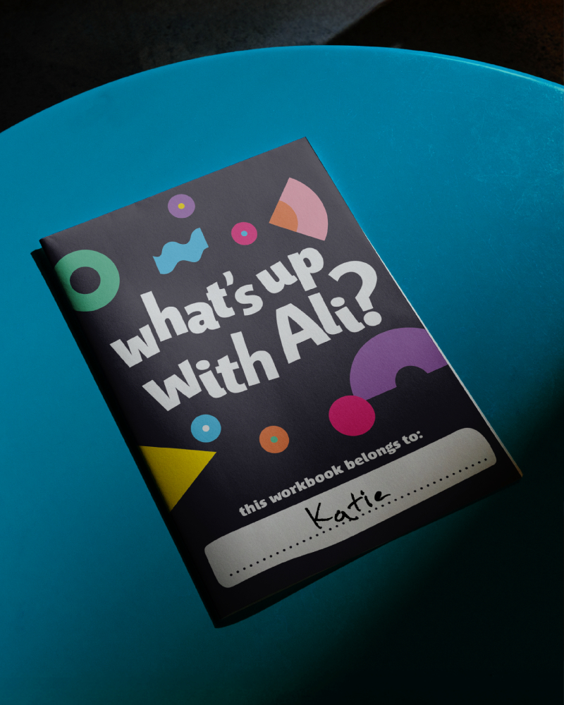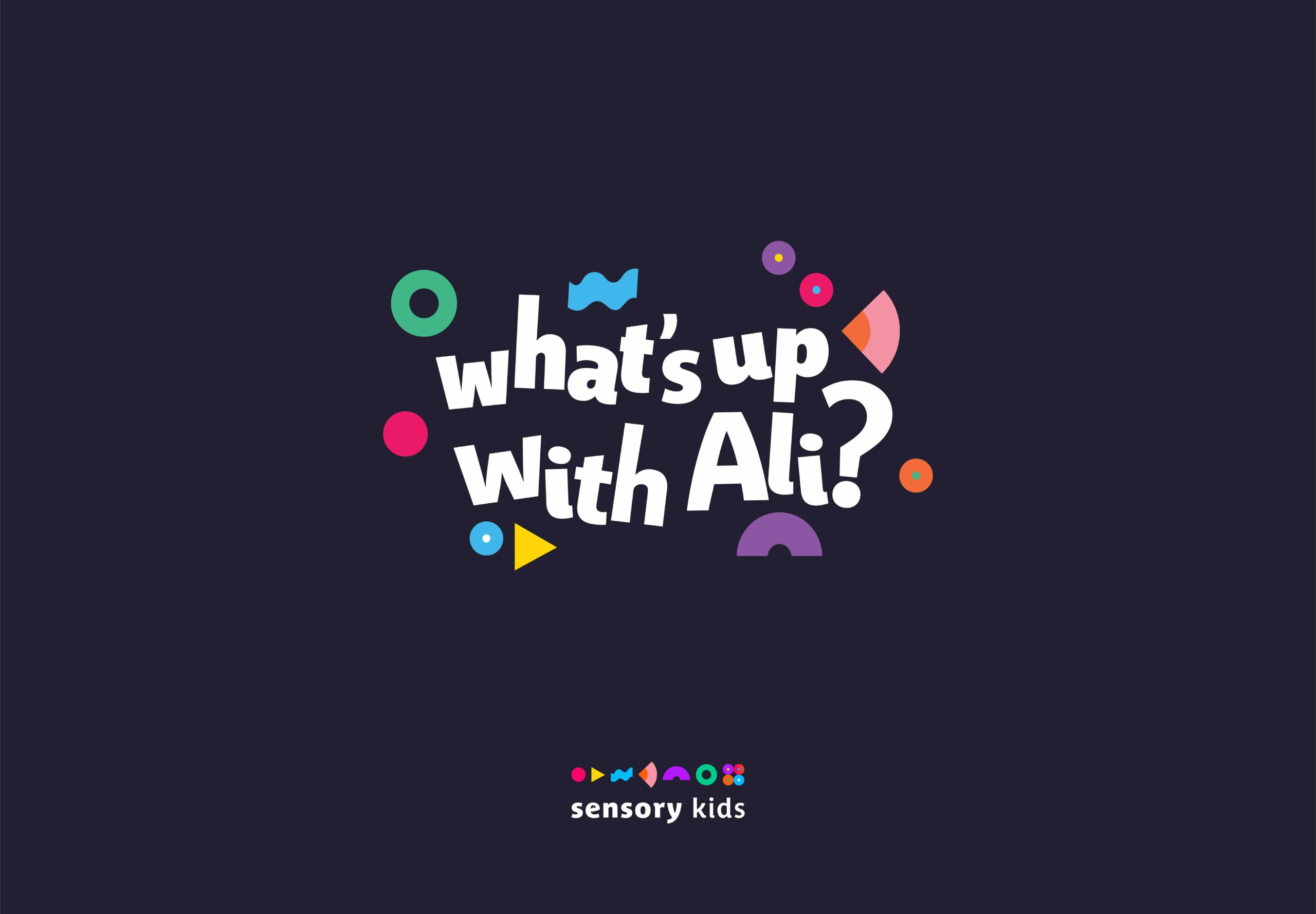 We started by creating a sub-brand identity for What’s Up with Ali? that could live alongside the main Sensory Kids brand. We carried key brand devices and shapes through to ensure consistency, but built on this to create a distinctive world for Ali to live in.