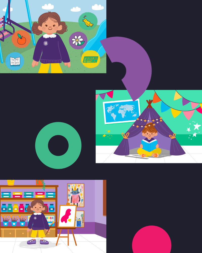Ali lives in a fully illustrated world, designed to support the learning materials and create an engaging experience for children. Soft shapes, controlled details, bright colours that are never too bold, and a consistent illustration style across all touchpoints supports the storytelling behind Ali’s world while remaining calm enough for sensory-sensitive children.